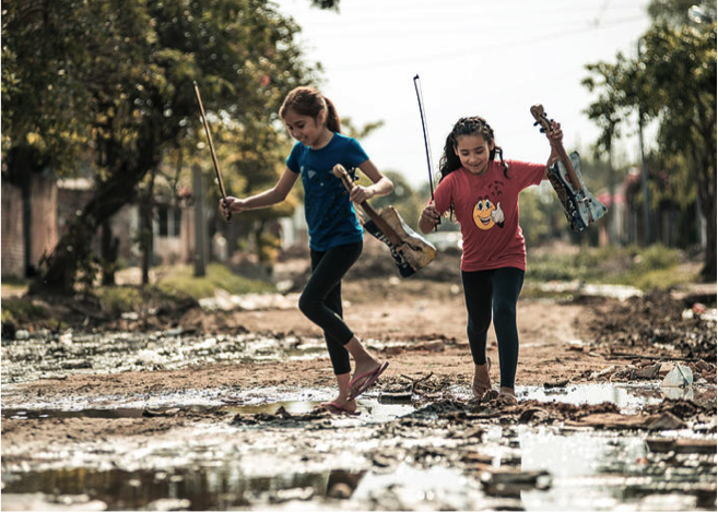 Children from Asunción, Paraguay who play musical instruments made from scrap materials collected from Asunción’s Cateura landfill / dump.